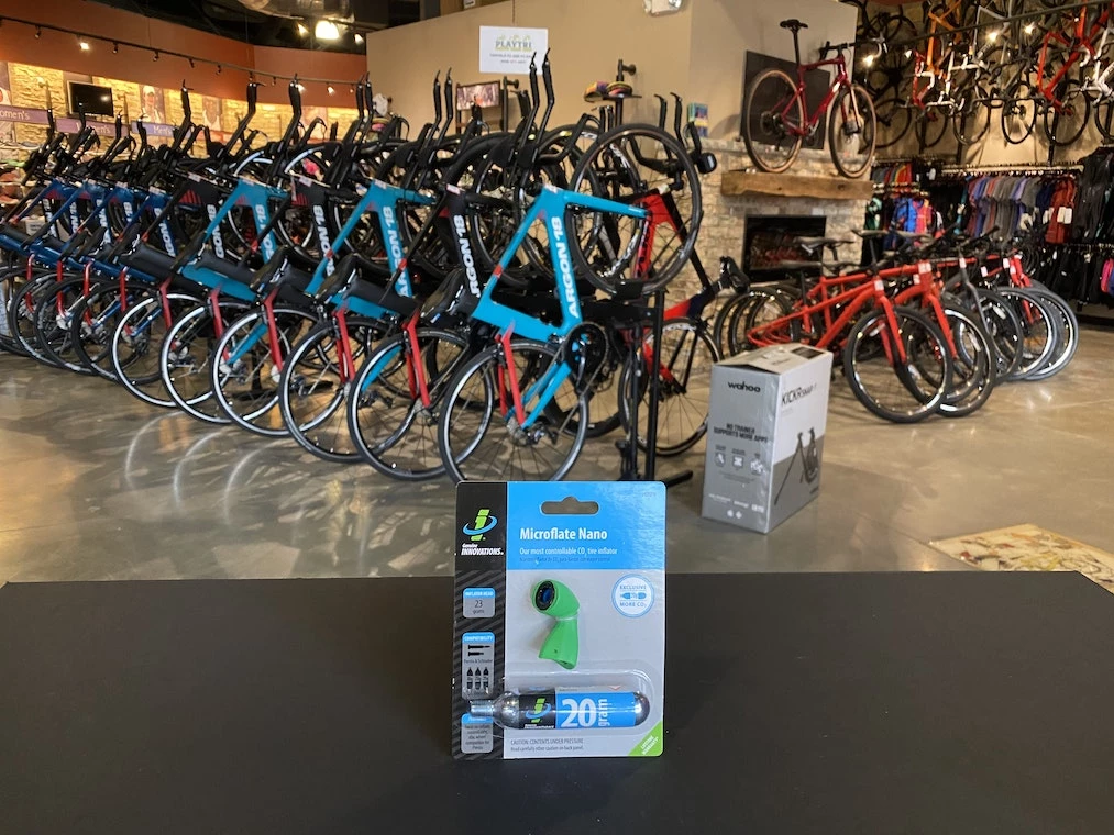 Product includes (1) Microflate Nano inflator head and (1) threaded 20 gram CO2 cartridge